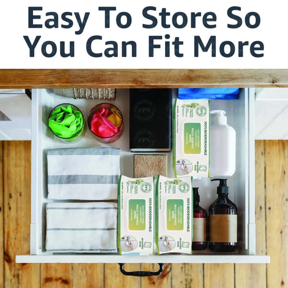 Our AntiBacterial Multi-Surface Wipes are designed to deliver powerful germ protection while remaining gentle on the environment. Made from 100% biodegradable bamboo fibers, these Multi-Surface Wipes effectively kill 99.9% of bacteria and help maintain hygienic, odor-free surfaces throughout the day.