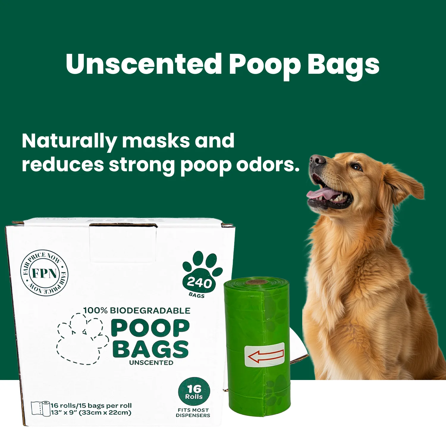 240 Unscented Poop Bags for Dogs – Comes with 16 compact rolls, each containing 15 easy-to-use bags.