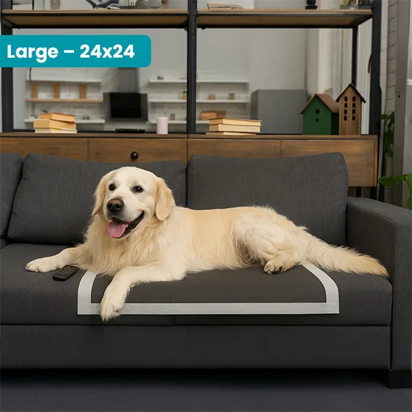 Managing accidents with large dogs can be challenging, especially in active households. Our Large Dog Pee Pads (24×24 inch) are specially designed to handle bigger messes, making them a reliable choice within our trusted range of dog pee pads. They help protect floors, reduce cleanup time, and maintain a cleaner living space.