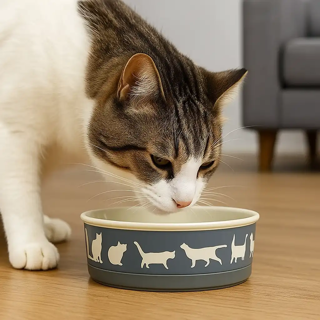 Customers looking for different styles or smaller sizes may also like the Large Gray Pet Food Bowl for Dogs & Cats – 7.5” x 2.4”, which pairs perfectly for multi-cat households or smaller spaces.