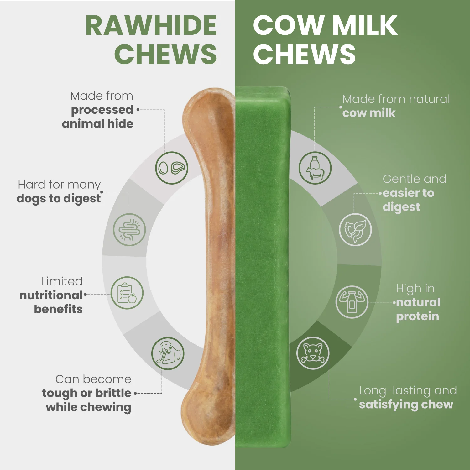 Milk-based cheese chews naturally contain protein and calcium, supporting strong bones, muscles, and overall health.