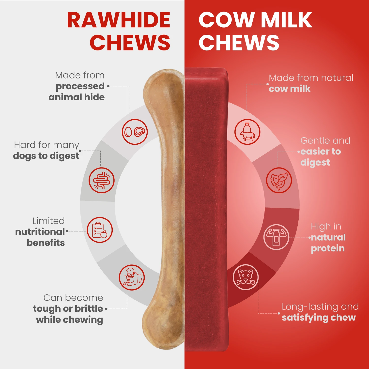 A safer and healthier alternative to rawhide chews with better digestibility.